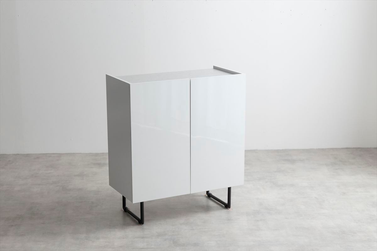 【ホワイト】本体:パーティクルボード、天板:メラミンシート貼り、扉:鏡面貼り、側面:紙貼り
