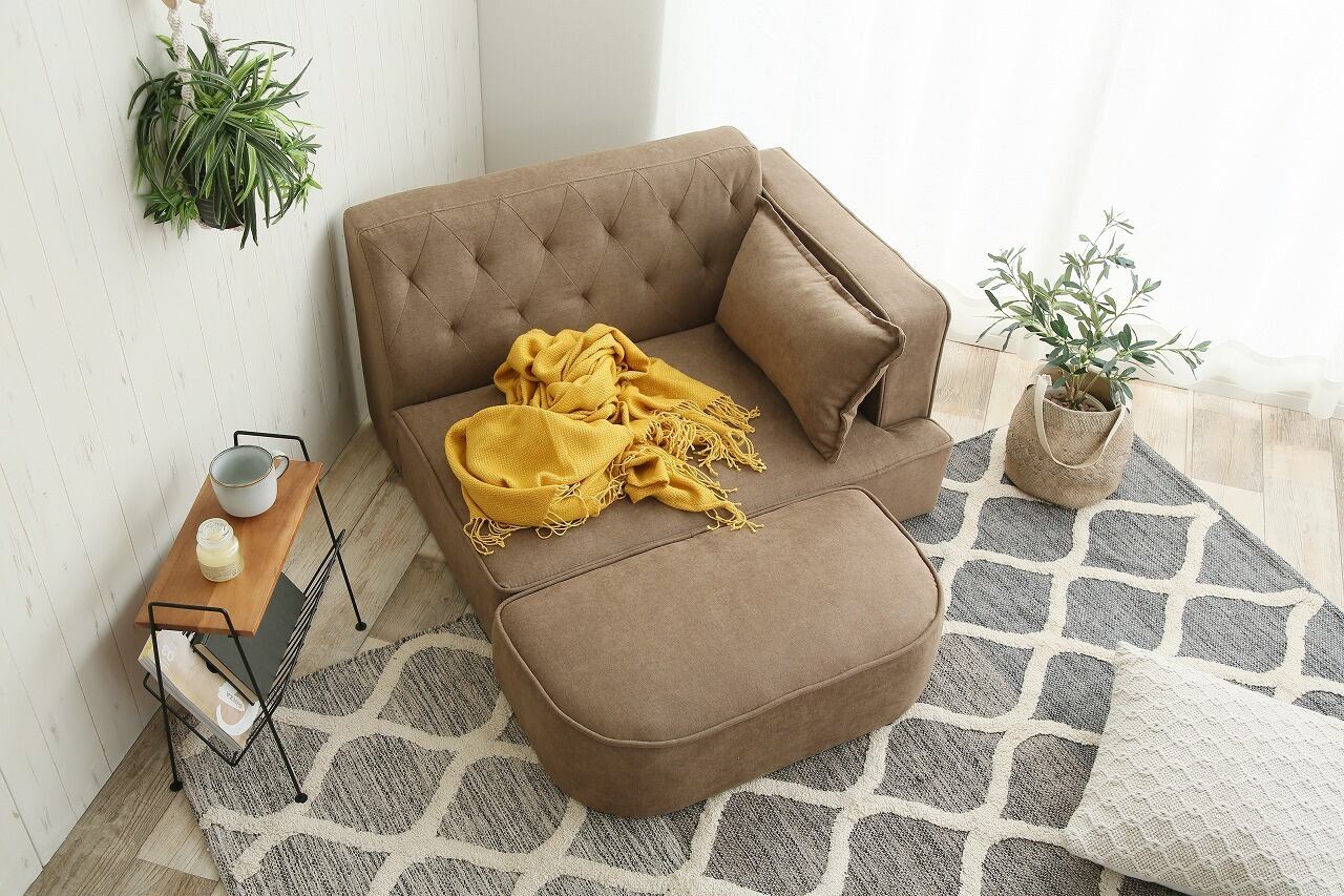ファブリック、ウレタンフォーム、Sバネ、天然木脚部