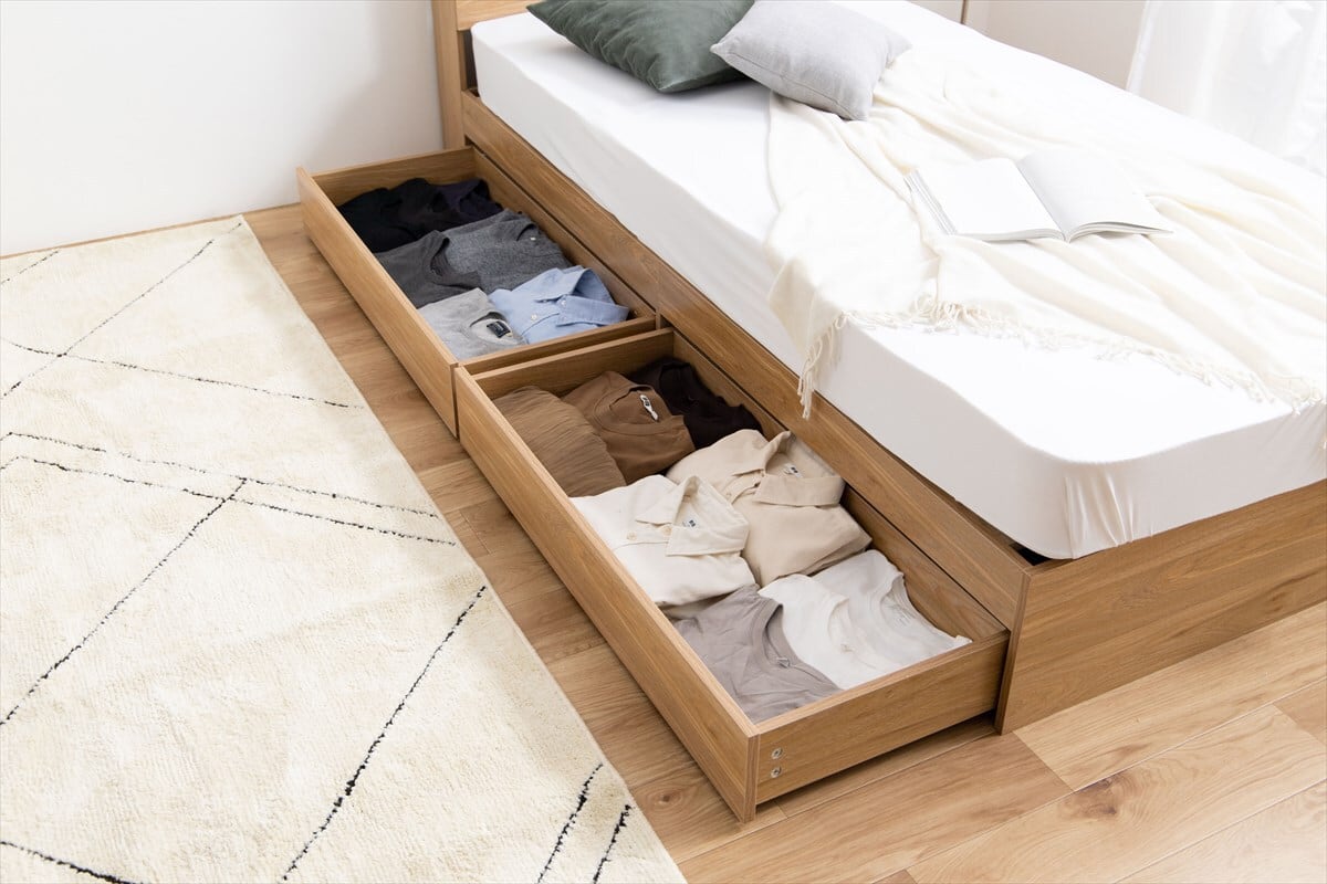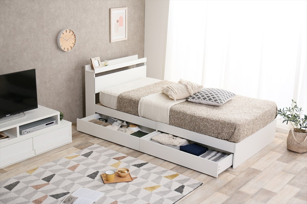 【セミダブル】 Pluto 収納付きベッド 高密度アドバンスポケットコイル
