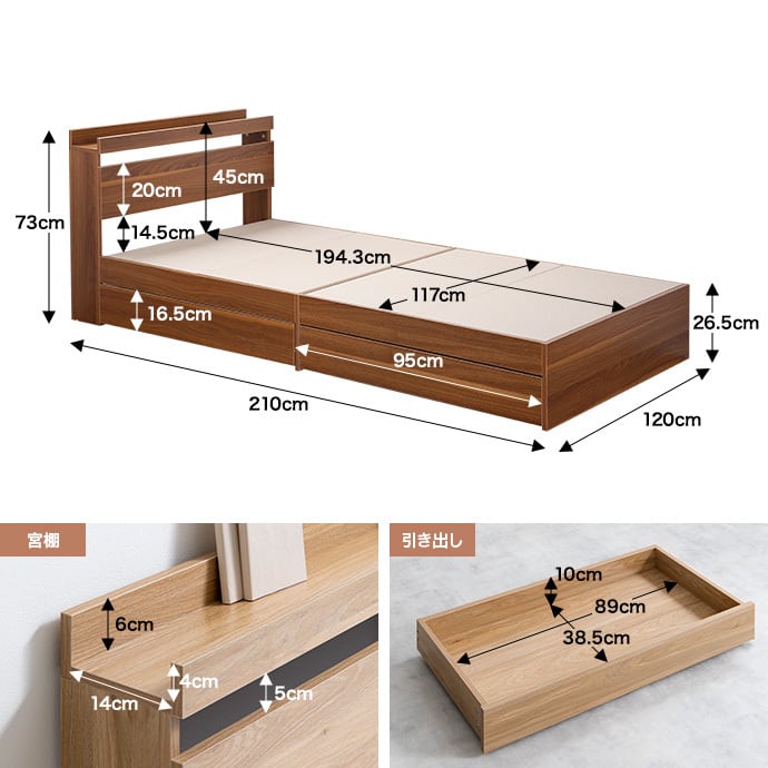 【ヘッドボード内寸】幅:120cm×奥行き:14cm×高さ:6cm