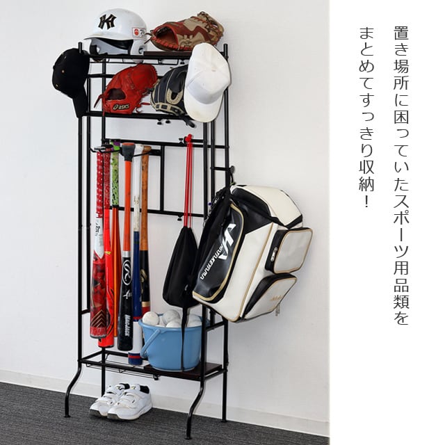 ●さまざまなスポーツ用品の他に、玄関収納としてもお使いいただけます。自転車用ヘルメットやお子様の外遊び道具など、お部屋に持ち込みたくない物の収納に便利です