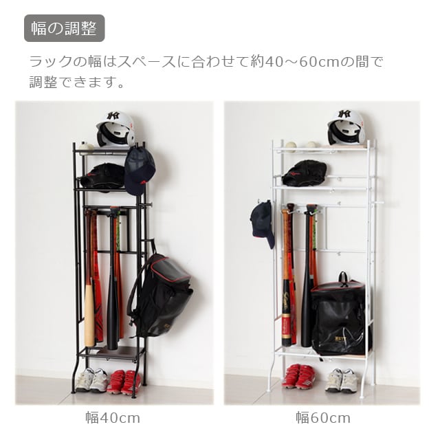 ●ラックの幅はスペースに合わせて約40~60cmの間で調整できます。