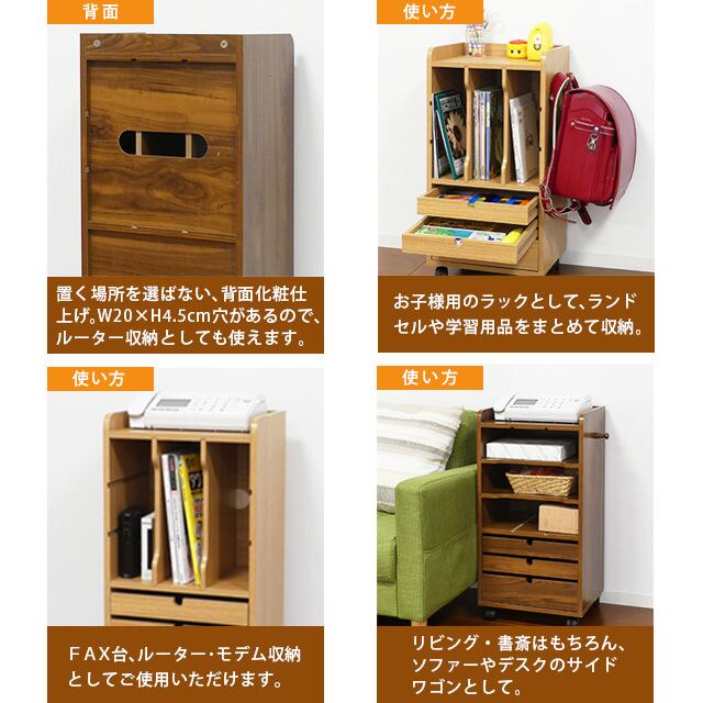 ●引出しは浅型2杯、深型1杯があり、抜け落ち防止のストッパー付。A4書類が収納できます。