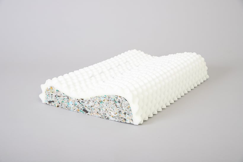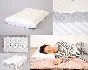 枕(中材) 枕上部:ウレタンフォーム(プロファイル加工)、枕下部:再生ウレタンフォーム