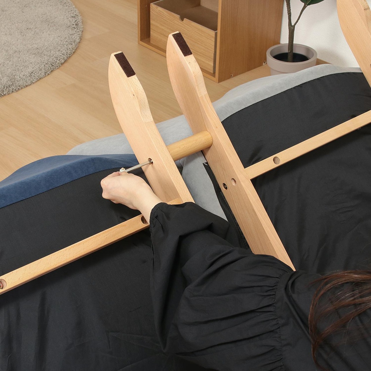 材質:■構造部材(本体):金属(鋼) ■構造部材(脚部):天然木(ビーチ材/ラッカー塗装) ■表面加工:なし ■張り材:ポリエステル100% ■クッション材(座面):ウレタンフォーム/ウレタンチップ ■クッション材(背面):ウレタンフォーム/PP綿