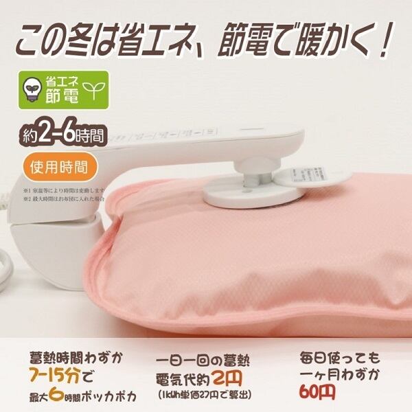 使用時間:約2-6時間 ※最大時はお布団の中で使用した場合